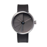 搭配深色水泥錶面、髮絲紋面 316L 醫療級不鏽鋼錶殼、銀藍配色不鏽鋼指針、拋光 316L 醫療級不鏽鋼錶冠與義大利植揉上色黑色皮錶帶,呈現出較為沉穩、專業的態度,適合搭配較為正式的服裝。